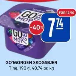 Rema 1000 TINE Go'morgen jordbær tilbudTINE Go'morgen jordbær 190 gRema 100011,90 kr7,14 kr-40%13 april 202619 april 2026