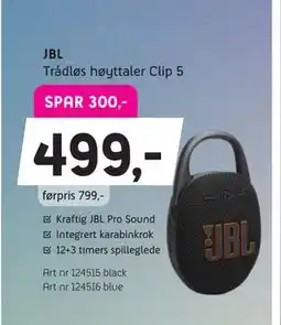 | Trådløs høyttaler Clip 5 1 stk | ELON | 799,00 kr | 499,00 kr | 300,00 kr Rabatt | 16 februar 2026 | 01 mars 2026 | |