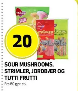 | SOUR MUSHROOMS, STRIMLER, JORDBÆR OG. TUTTI FRUTTI 80 g | Bunnpris | 20,00 kr | 12 januar 2026 | 18 januar 2026 | |||