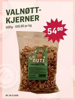 | Valnøttkjerner, NOK 29.9 | Meny | 29,90 kr | 30 november 2025 | 06 desember 2025 | |||