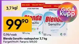 | Blenda Sensitiv vaskepulver farget/hvitt 3,7 kg | Gigaboks | 169,00 kr | 99,90 kr | 69,10 kr Rabatt | 09 mars 2026 | 14 mars 2026 | |