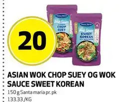 | ASIAN WOK CHOP SUEY OG WOK SAUCE SWEET KOREAN 150 g | Bunnpris | 20,00 kr | 07 april 2026 | 12 april 2026 | |||