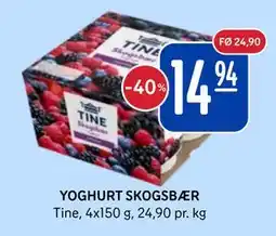 TINE YOGHURT SKOGSBÆR, JORDBÆR, VANILJE OG MELON