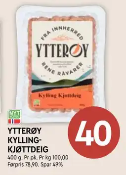 | Kyllingkjøttdeig Ytterøy 700 g | Storcash | 67,67 kr | 09 mars 2026 | 11 april 2026 | |||